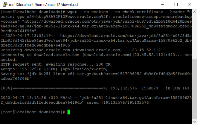 Oracle 계정 로그인 - jdk 선택 - jdk 다운로드 정보 복사 - wget 다운로드