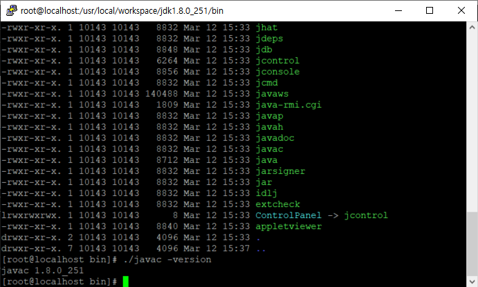 cd /usr/local/workspace/jdk1.8.0_251/