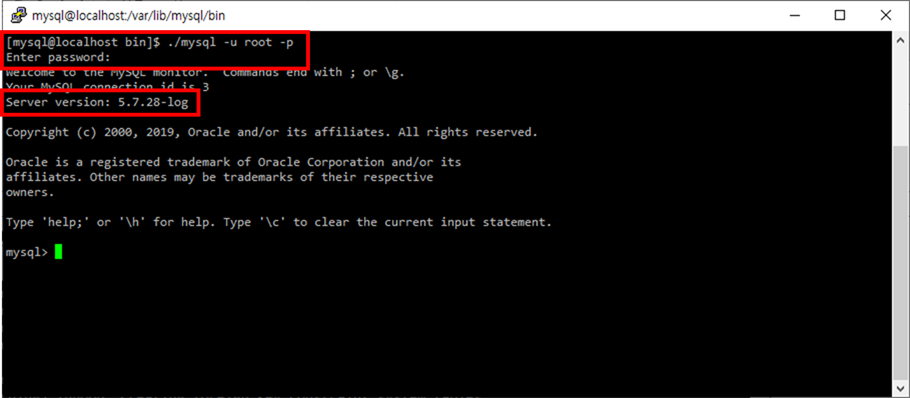 ./mysql -u root -p