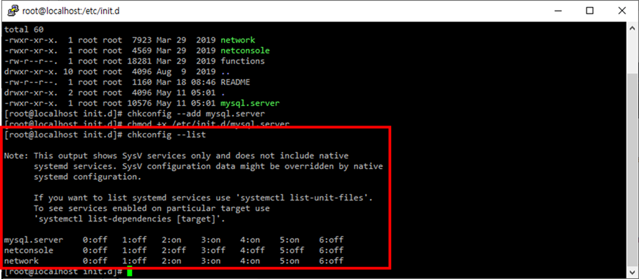 I 리눅스(Linux) CentOS 7 ─ CentOS 7 기동시 MySQL 자동 실행
