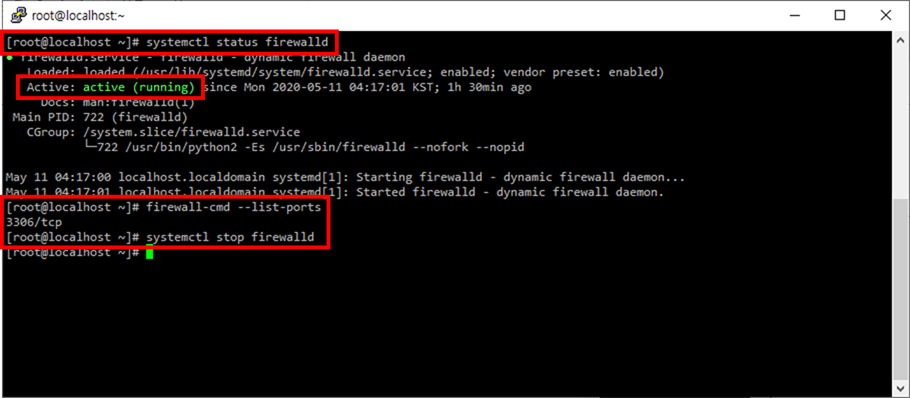 I 방화벽 중지 후 상태 확인
