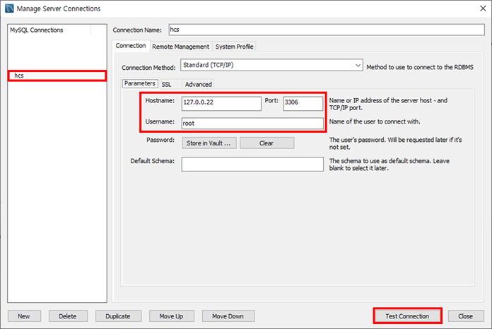 우클릭 후 Edit Connection으로 서버 연결 설정