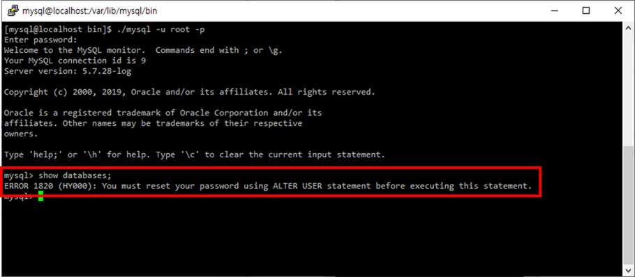 I MySQL root 계정 비밀번호 변경 요구 확인