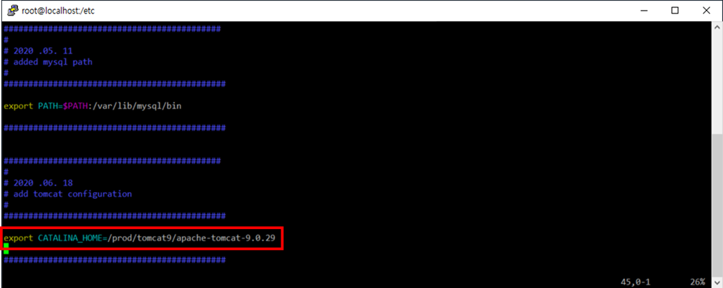 export CATALINA_HOME=/prod/tomcat9/apache-tomcat-9.0.29