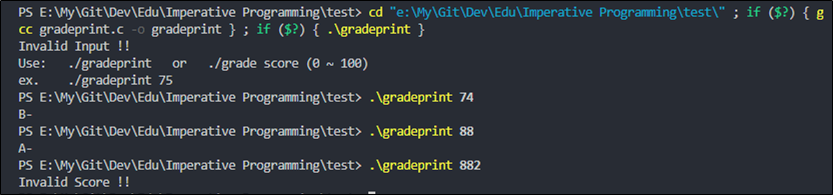 if (grade == Invalid) printf("Invalid Score !!\n");