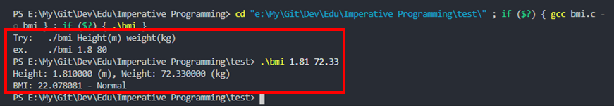 fprintf(stderr, "Try: .\\bmi Height(m) weight(kg)\n");