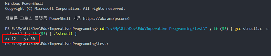 printf("x: %d y: %d\n", v.x, v.y);