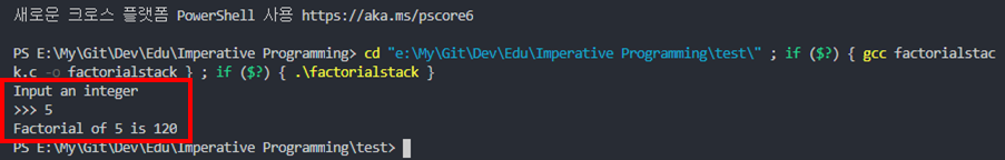 recursive factorial function (stack) - 팩토리얼 재귀함수