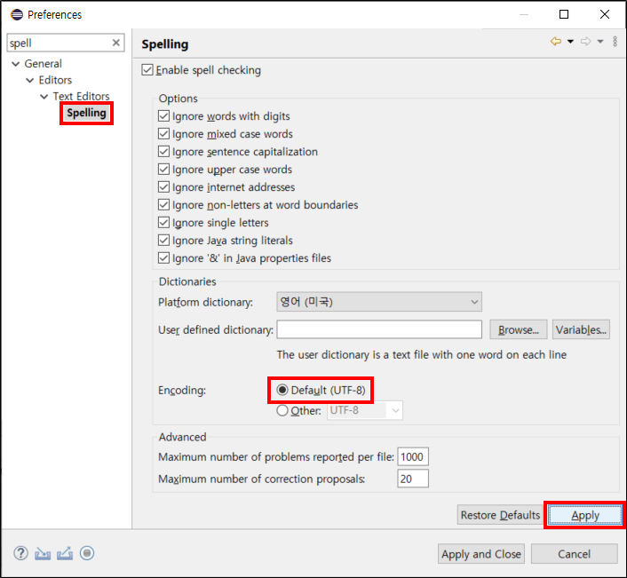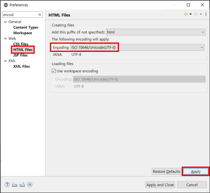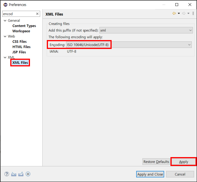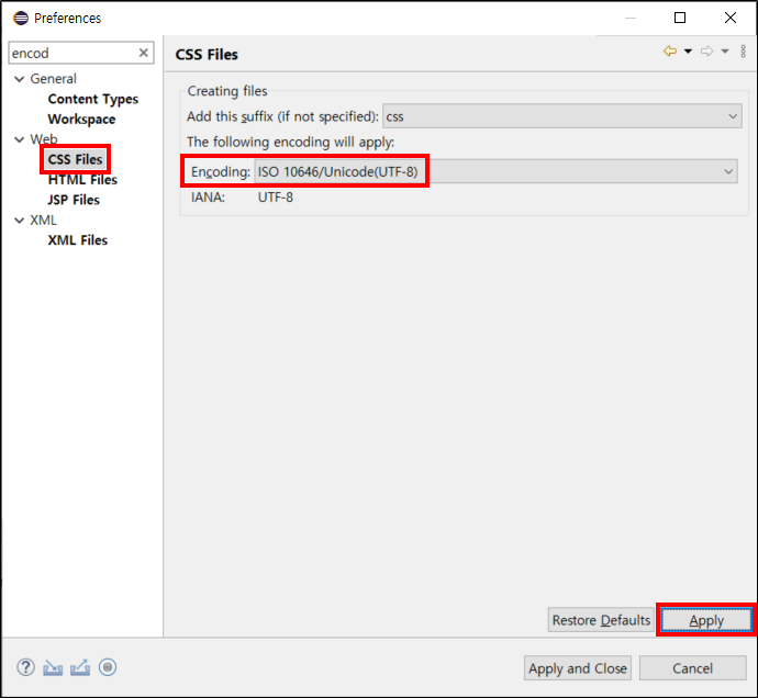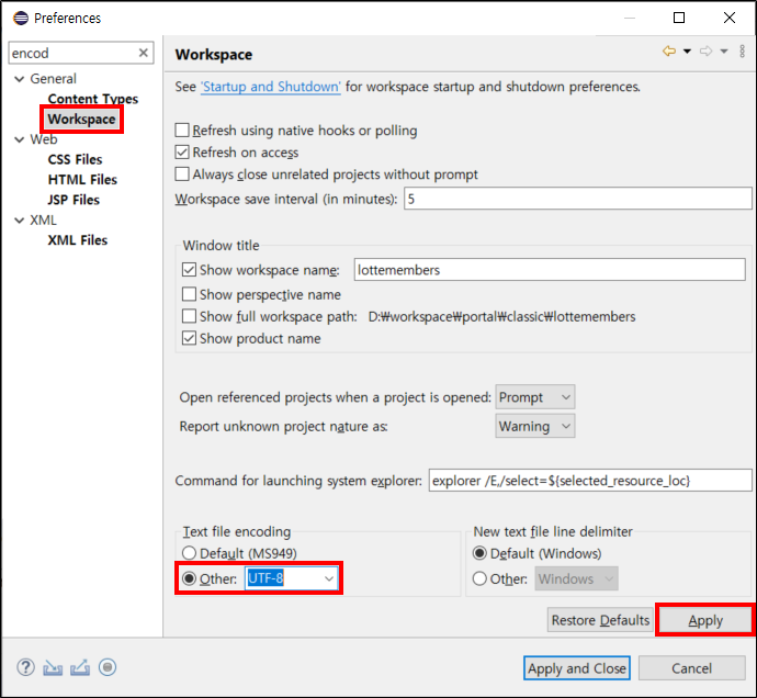 이클립스 (Eclipse) - 인코딩(Encoding) 설정 - UTF-8