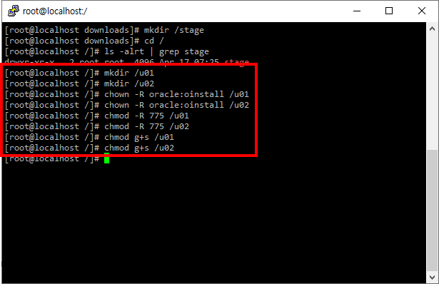 # chmod -R 775 /u01