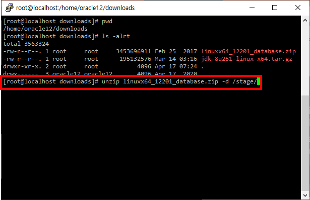 # unzip linuxx64_12201_database.zip -d /stage/