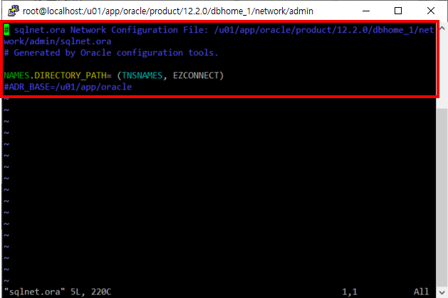 # cd /u01/app/oracle/product/12.2.0/dbhome_1/network/admin