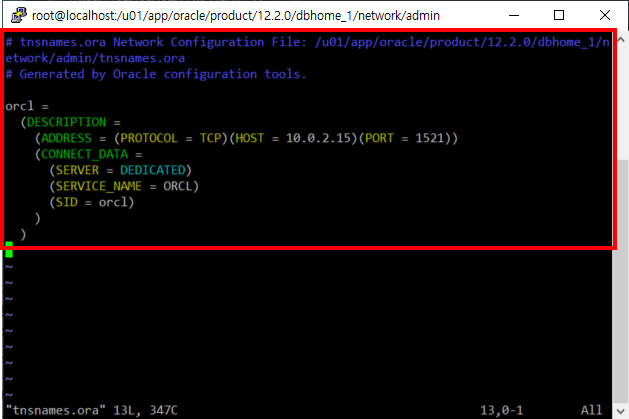 (ADDRESS = (PROTOCOL = TCP)(HOST = 10.0.2.15)(PORT = 1521))