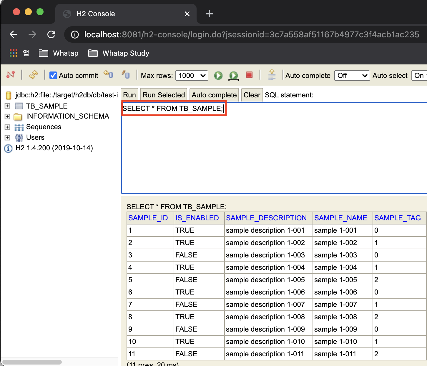 [ tb_sample 테이블 확인 ]