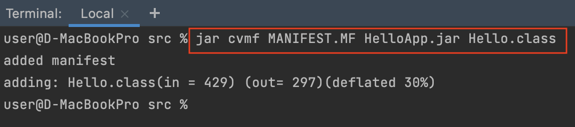 jar cvmf MANIFEST.MF HelloApp.jar Hello.jar |
