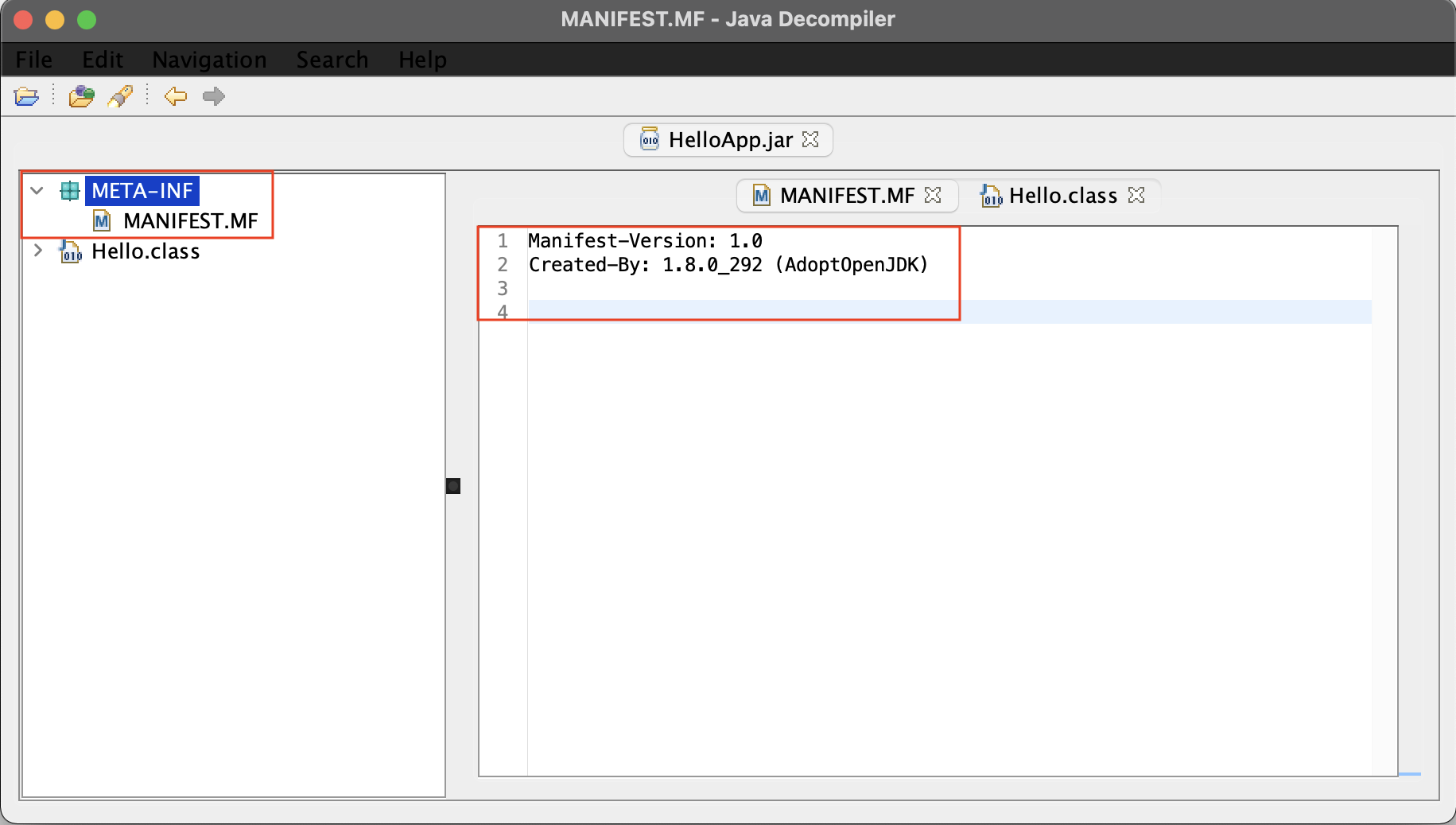 tar -xvf HelloApp.jar cd META-INF cat MANIFEST.MF |