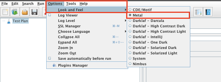 Options > Look and Feel > Metal