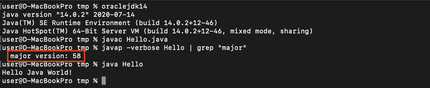 [JAVA 실습 #10] 자바(Java) 컴파일(Compile) 버전 확인 .class 파일로 컴파일 한 자바의 버전 확인 방법 javap -verbose -cp <경로> <클래스> | grep "major" JVM Major Version (decimal) Java 1.4 48 Java 5 49..
