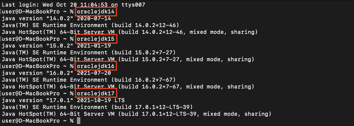 alias oraclejdk17='unset JAVA_HOME;export JAVA_HOME=$(/usr/libexec/java_home -v 17);java -version'
