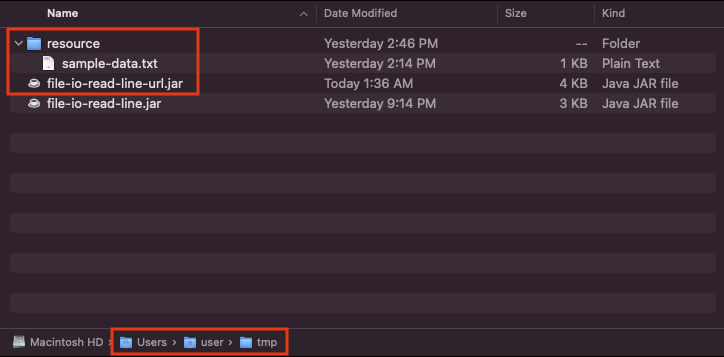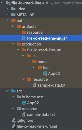 - /Users/user/tmp/file-io-read-line-url.jar!/resource/sample-data.txt 와 같은 형태로 파일 경로를 찾으므로 읽기 불가