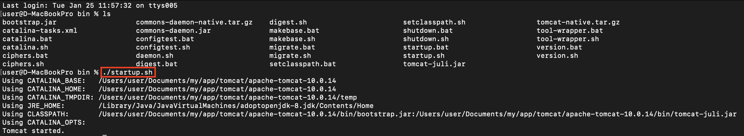 tomcat의 bin 디렉토리에서 startup.sh 실행