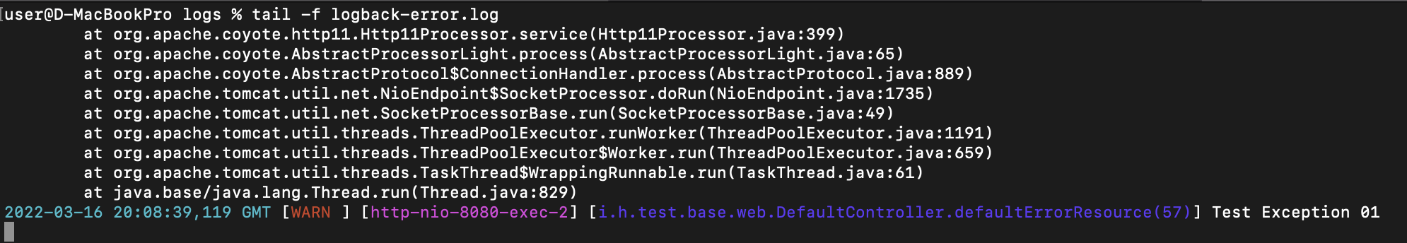 - ThresholdFilter 활용하여 log level을 WARN 설정