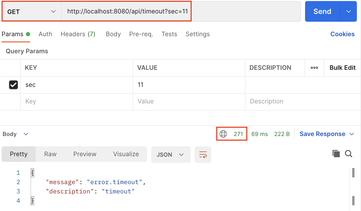 - TimeoutException 발생시 일괄적으로 사용자가 정의한 response code로 반환 확인