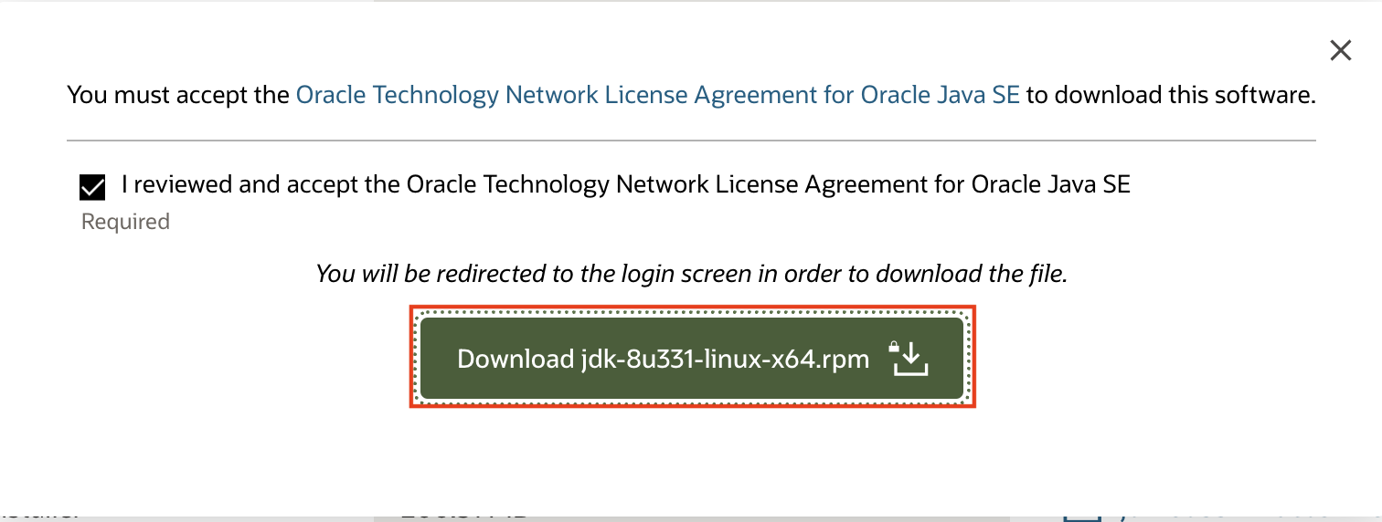 오라클 로그인 > Download 버튼 우클릭 후 링크 복사 > wget 다운로드 실행