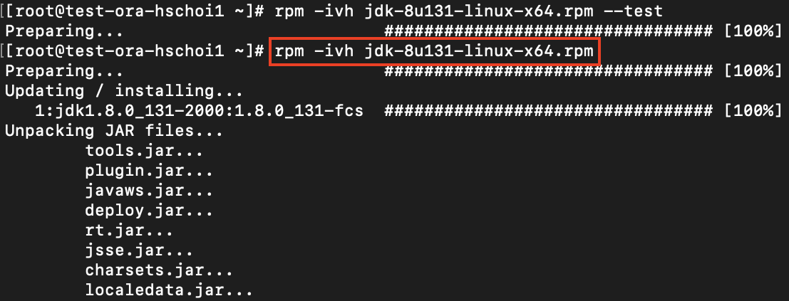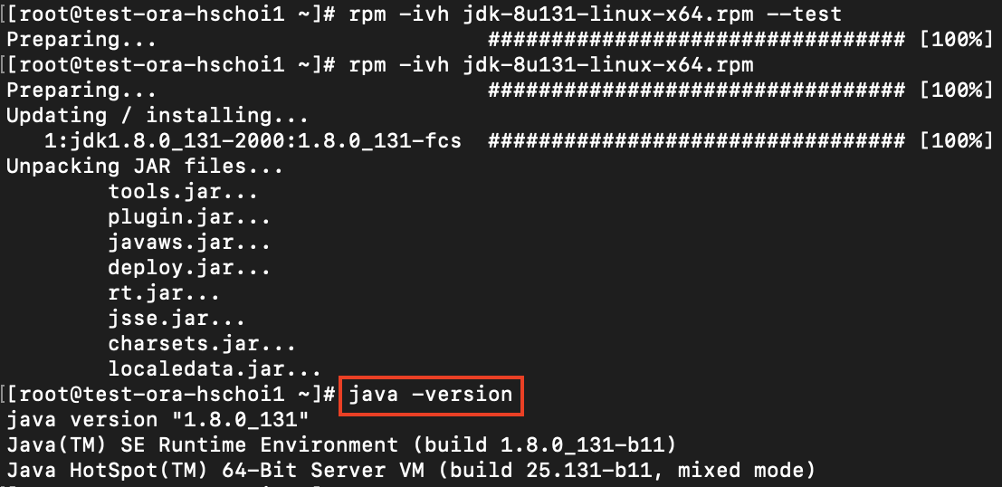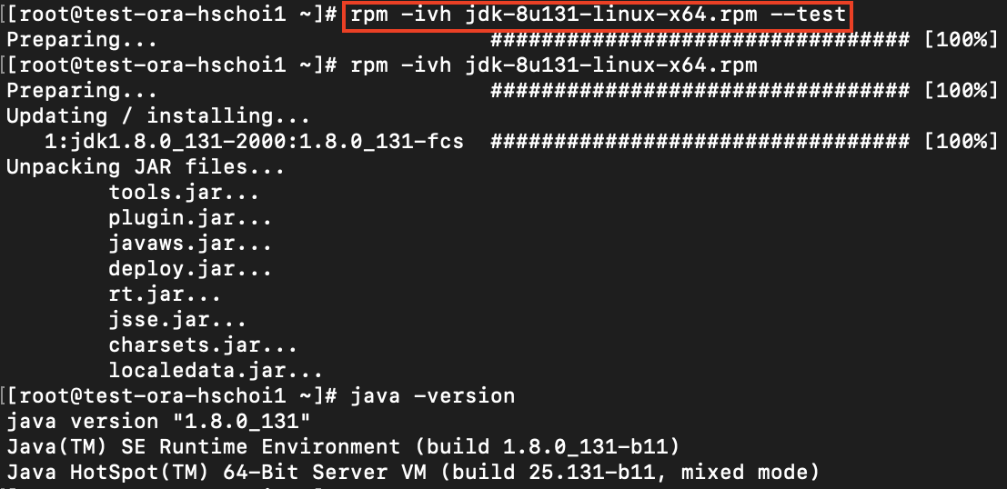 rpm -ivh jdk-8u131-linux-x64.rpm --test