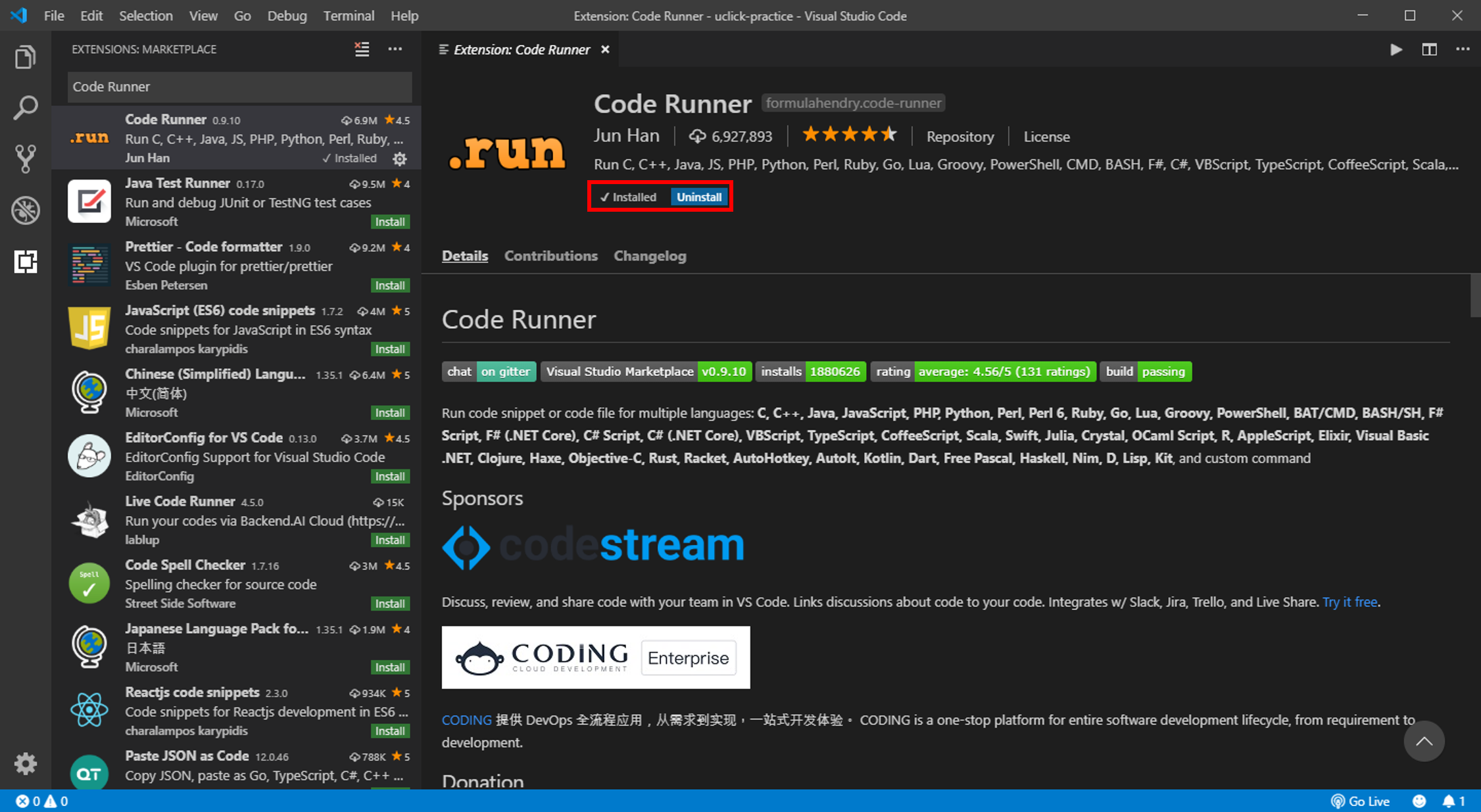 (3) Code Runner 설치 확인