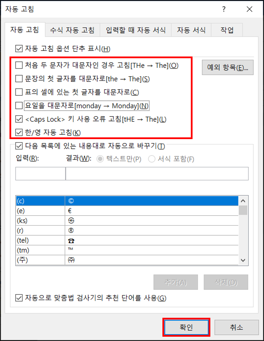 I MS워드 대소문자 자동변환 방지